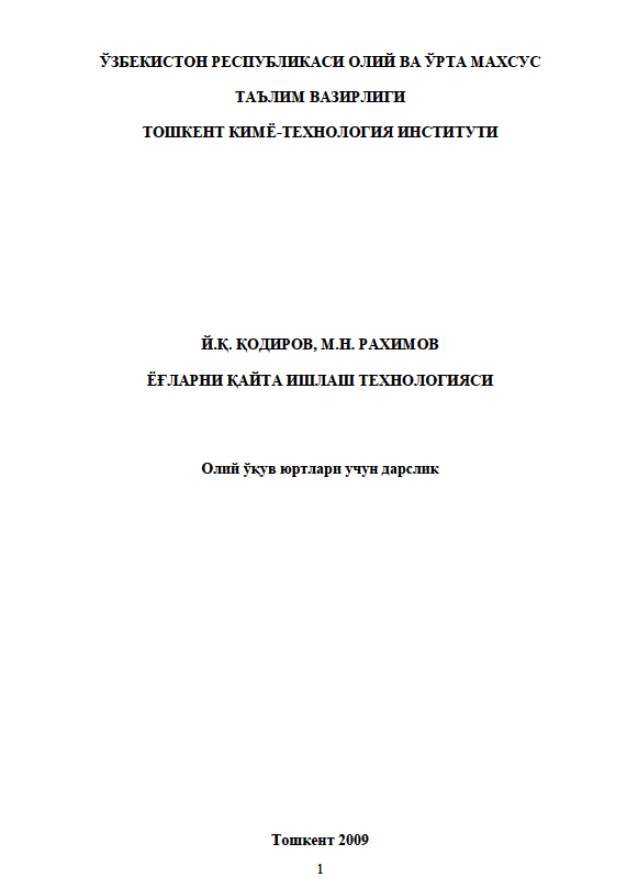 ЁҒЛАРНИ ҚАЙТА ИШЛАШ ТЕХНОЛОГИЯСИ