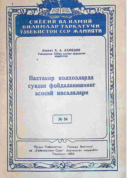 Пахтакор колхозларда сувдан фойдаланишнинг ...