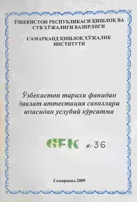 Ўзбекистон тарихи фанидан давлат ...