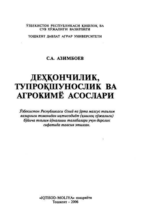 ДЕҲҚОНЧИЛИК, ТУПРОҚШУНОСЛИК ВА АГРОКИМЁ ...