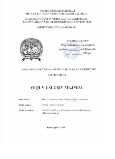 MEVA-SAVZAVOT EKINLARI FIZIOLOGIYASI VA ...