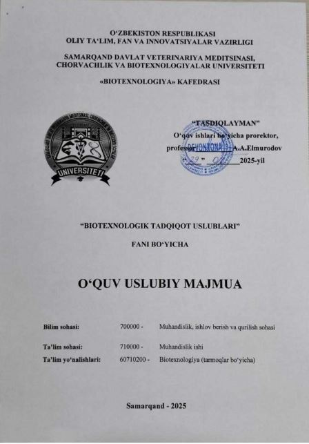 BIOTEXNOLOGIK TADQIQOT USLUBLARI