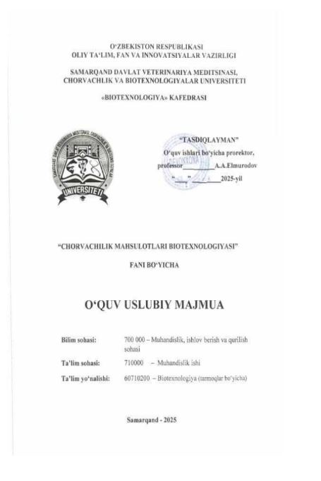 CHORVACHILIK MAHSULOTLARI BIOTEXNOLOGIYASI