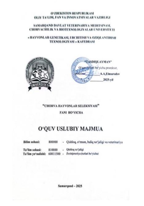 Samarqand davlat veterinariya meditsinasi, chorvachilik va bitexnologiyalar universiteti axborot resurs markazi.