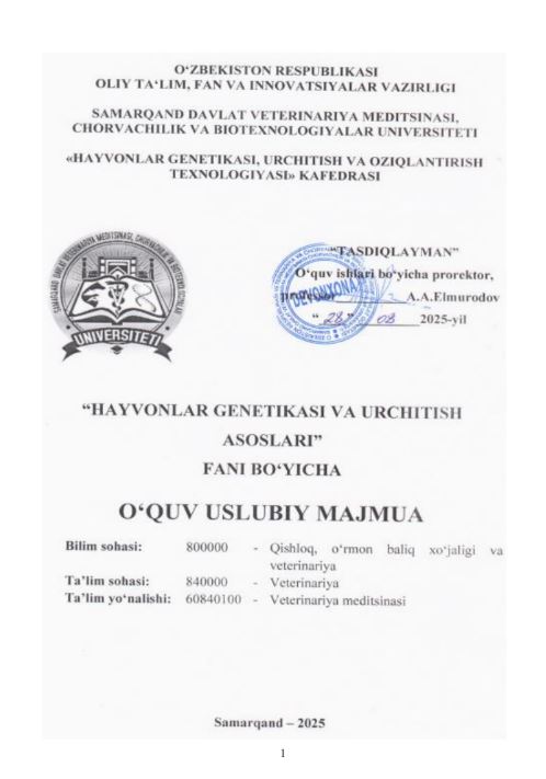 HAYVONLAR GENETIKASI VA URCHITISH ...