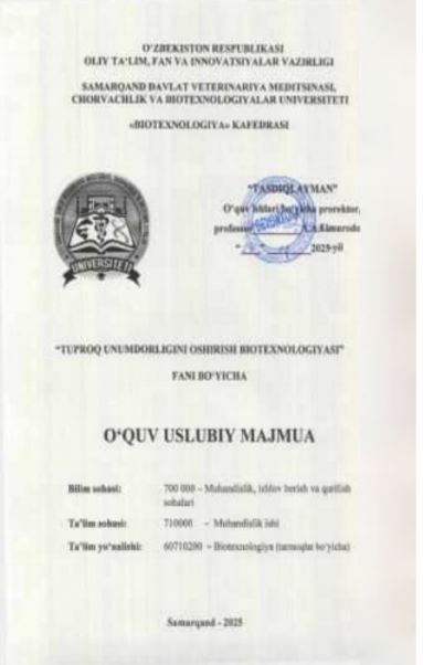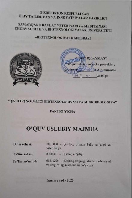 QISHLOQ XO'JALIGI BIOTEXNOLOGIYASI VA ...
