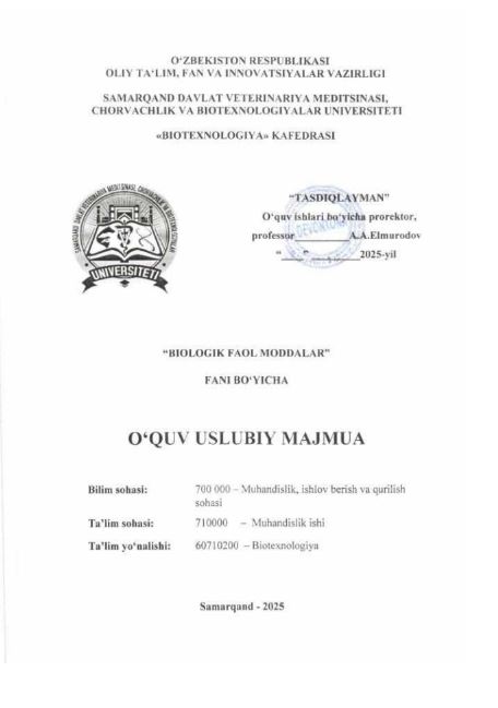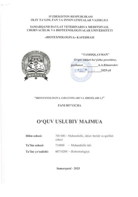 BIOTEXNOLOGIYA JARAYONLARI VA JIHOZLARI ...