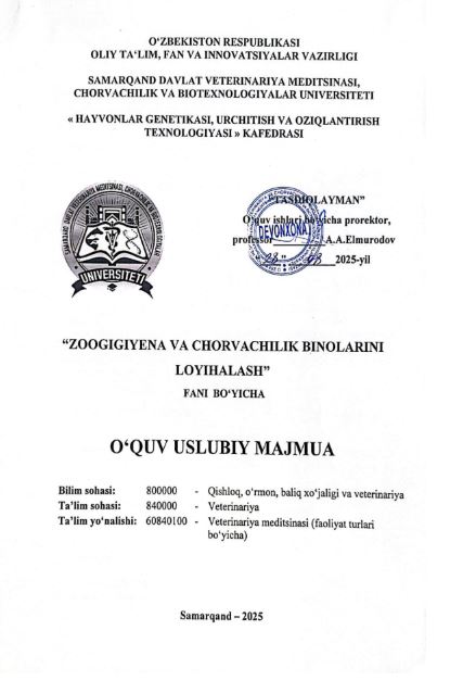 ZOOGIGIYENA VA CHORVACHILIK BINOLARINI ...