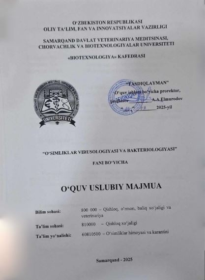 O‘SIMLIKLAR VIRUSOLOGIYASI VA BAKTERIOLOGIYASI