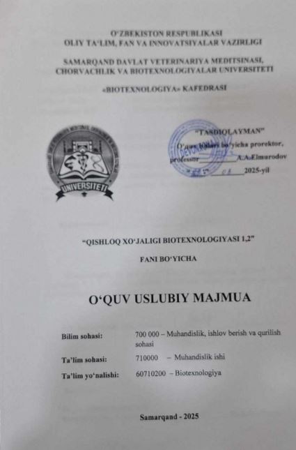 QISHLOQ XO'JALIGI BIOTEXNOLOGIYASI-1, 2