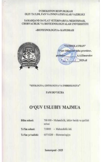 “SITOLOGIYA, GISTOLOGIYA VA EMBRIOLOGIYA