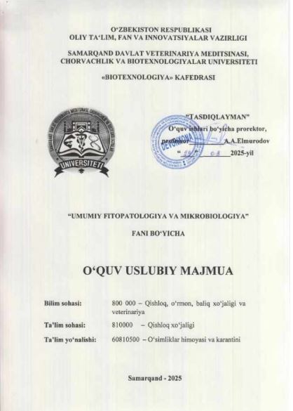 UMUMIY FITOPATOLOGIYA VA MIKROBIOLOGIYA