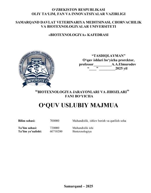 BIOTEXNOLOGIYA JARAYONLARI VA JIHOZLARI