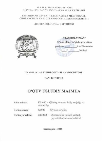 O'SIMLIKLAR FIZIOLOGIYASI VA BIOKIMYOSI