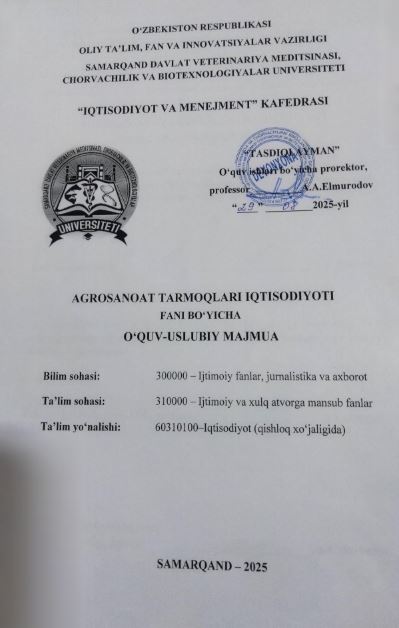 Samarqand davlat veterinariya meditsinasi, chorvachilik va bitexnologiyalar universiteti axborot resurs markazi.