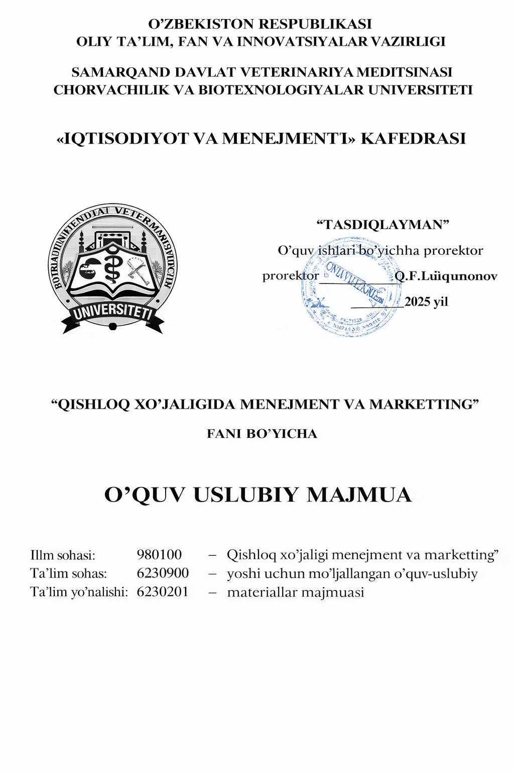 Samarqand davlat veterinariya meditsinasi, chorvachilik va bitexnologiyalar universiteti axborot resurs markazi.