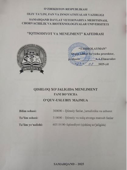 QISHLOQ XO‘JALIGIDA MENEJMENT