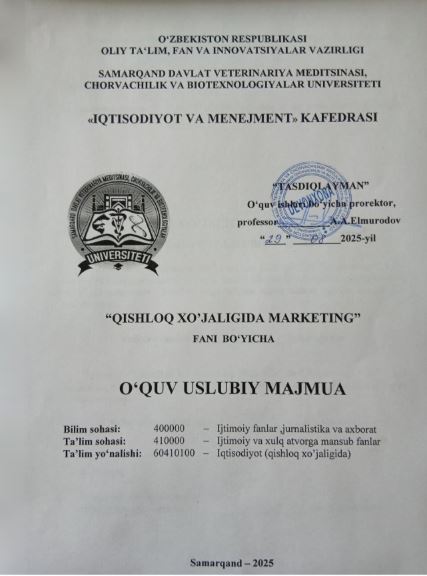 QISHLOQ XO’JALIGIDA MARKETING