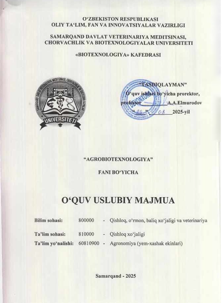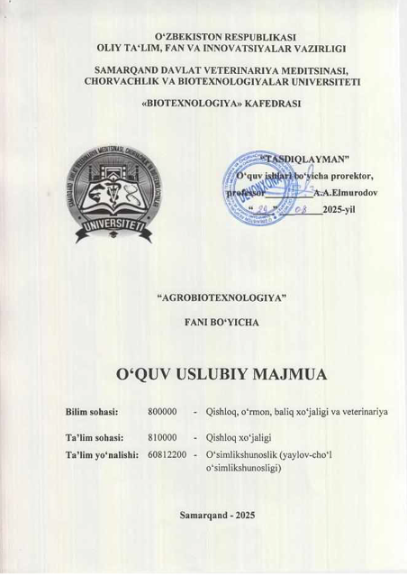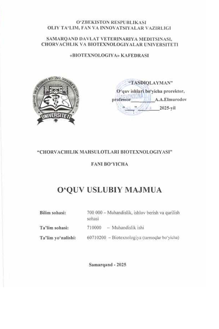 CHORVACHILIK MAHSULOTLARI BIOTEXNOLOGIYASI