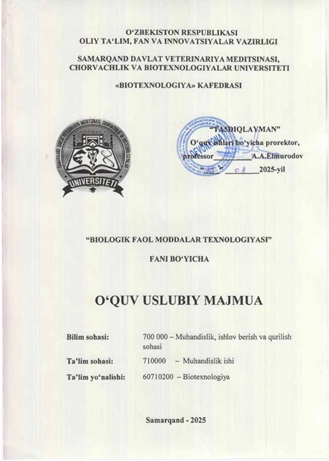 BIOLOGIK FAOL MODDALAR TEXNOLOGIYASI