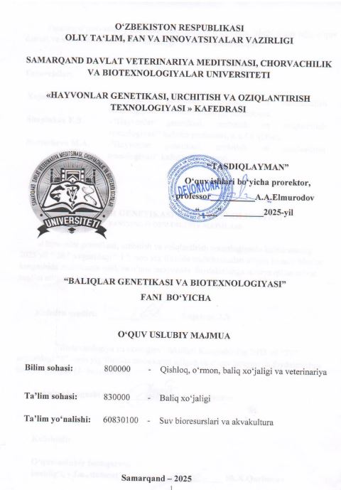 BALIQLAR GENETIKASI VA BIOTEXNOLOGIYASI