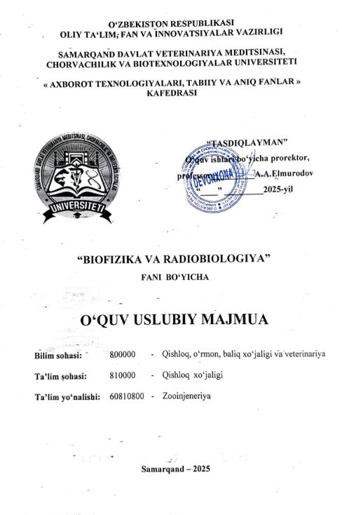 BIOFIZIKA VA RADIOBIOLOGIYA