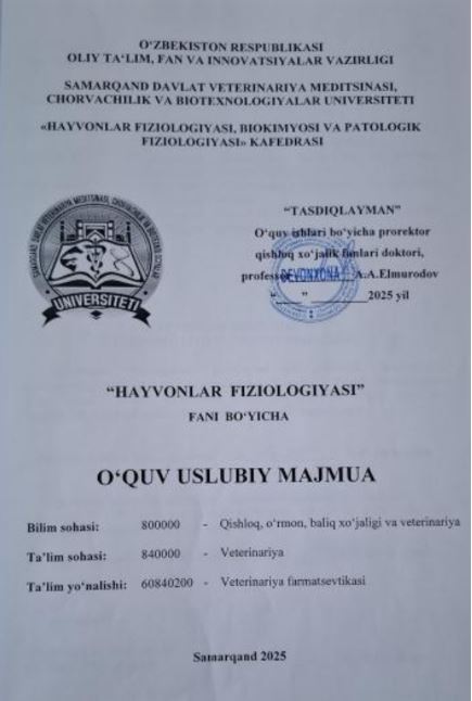 HAYVONLAR FIZIOLOGIYASI