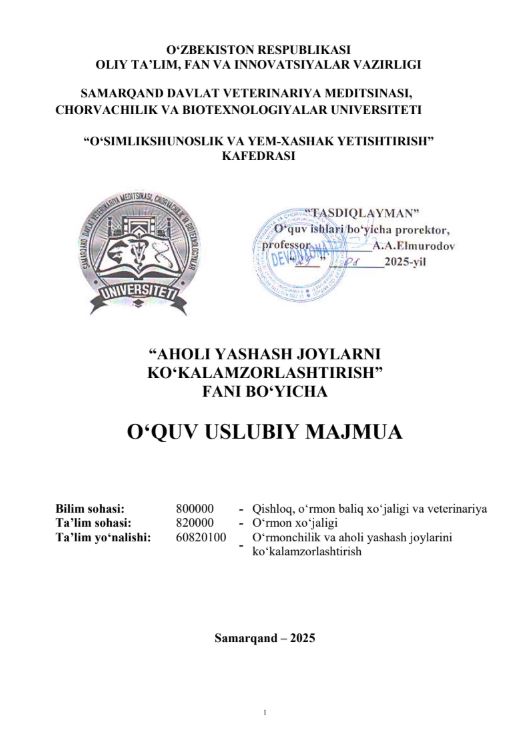 AHOLI YASHASH JOYLARNI KO‘KALAMZORLASHTIRISH