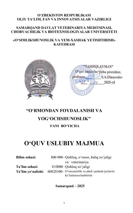 O‘RMONDAN FOYDALANISH VA YOG‘OCHSHUNOSLIK