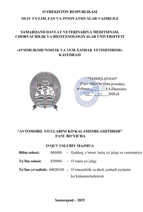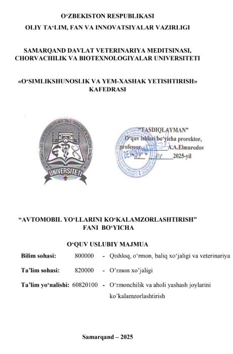 AVTOMOBIL YO‘LLARINI KO‘KALAMZORLASHTIRISH