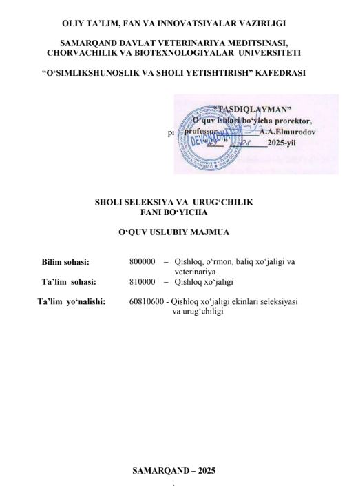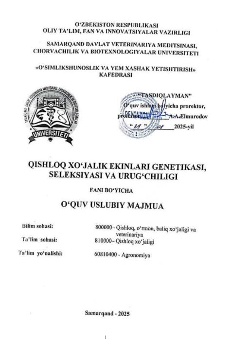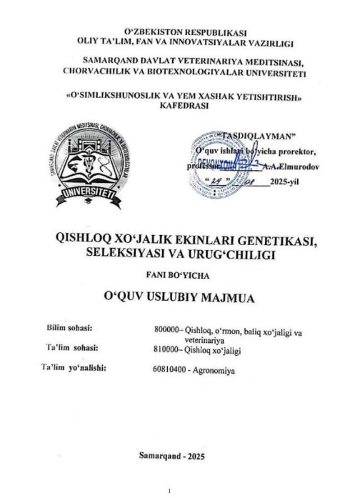 QISHLOQ XO'JALIK EKINLARI GENETIKASI, ...