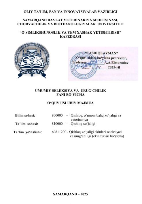 UMUMIY SELEKSIYA VA URUG‘CHILIK ...