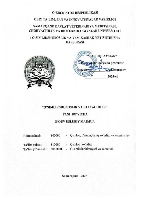 O‘SIMLIKSHUNOSLIK VA PAXTACHILIK