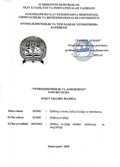 TUPROQSHUNOSLIK VA AGROKIMYO