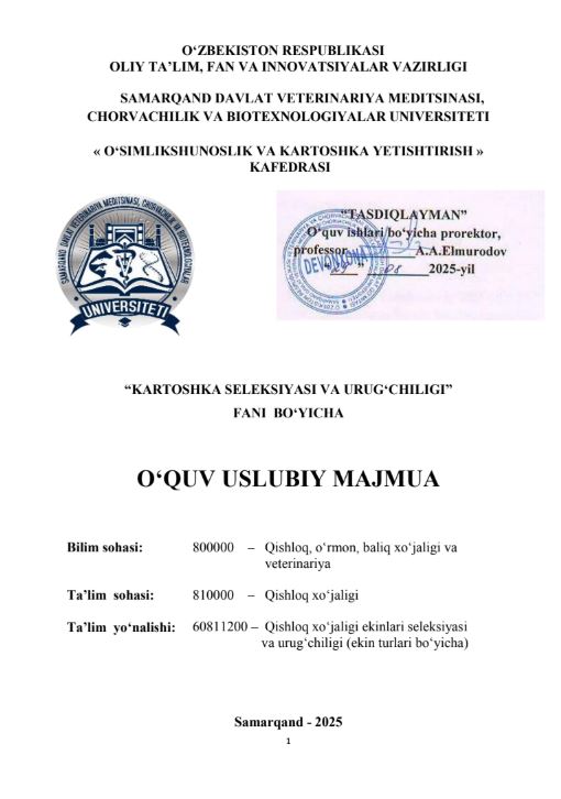 KARTOSHKA SELEKSIYASI VA URUG‘CHILIGI
