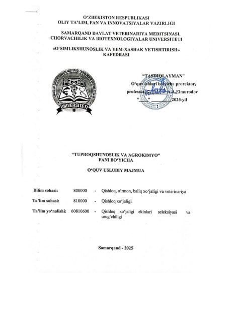TUPROQSHUNOSLIK VA AGROKIMYO