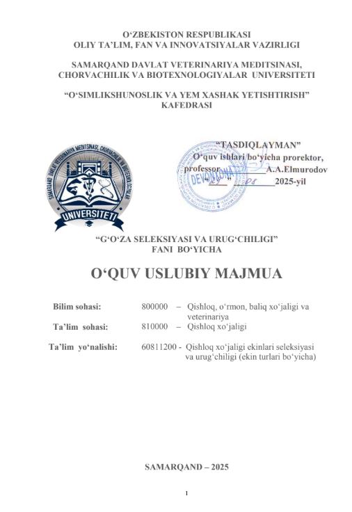 G‘O‘ZA SELEKSIYASI VA URUG‘CHILIGI