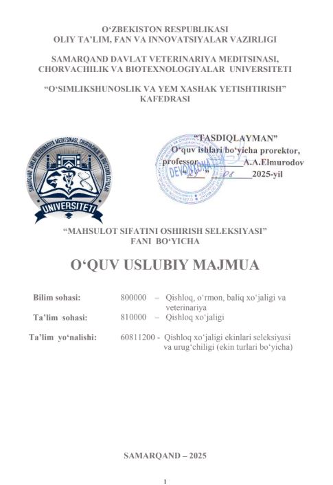 MAHSULOT SIFATINI OSHIRISH SELEKSIYASI