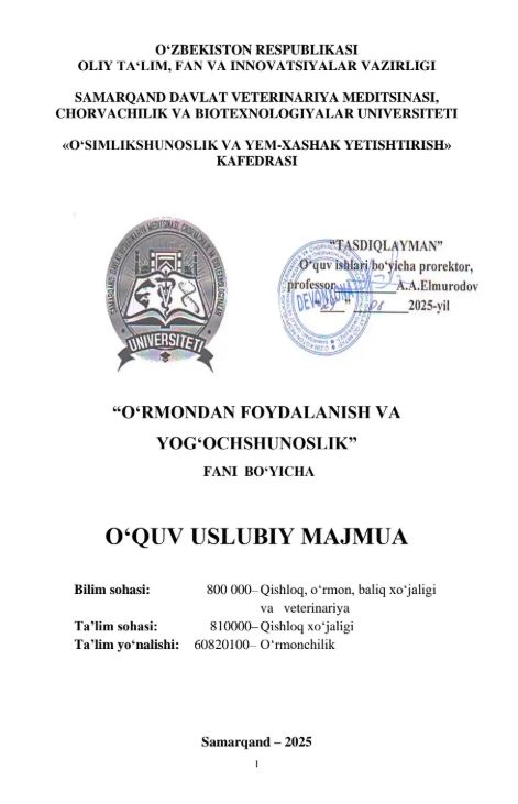 O‘RMONDAN FOYDALANISH VA YOGOCHSHUNOSLIK