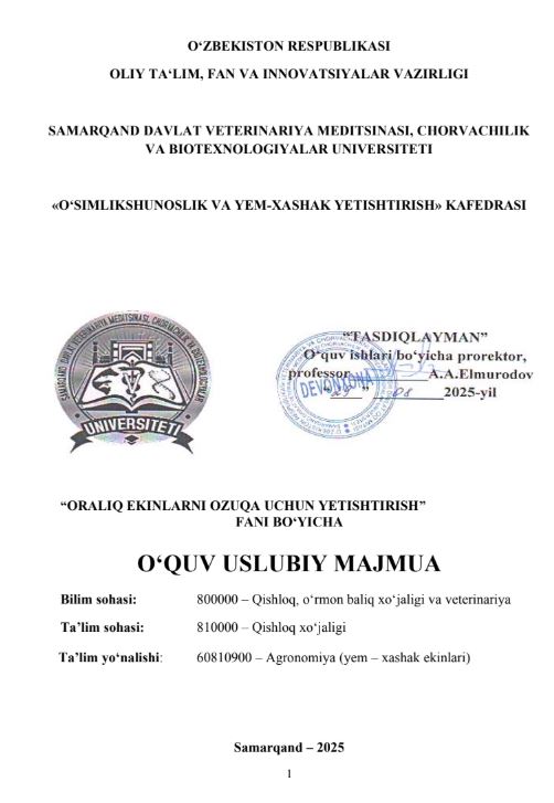 ORALIQ EKINLARNI OZUQA UCHUN ...