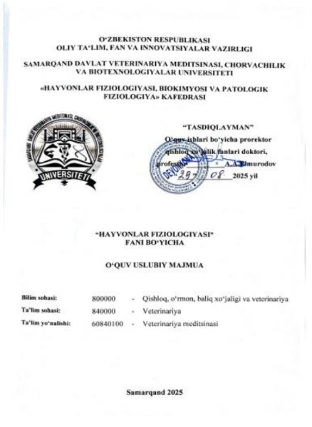 HAYVONLAR FIZIOLOGIYASI