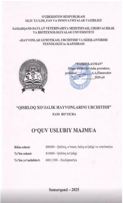 QISHLOQ XO'JALIK HAYVONLARNI URCHITISH
