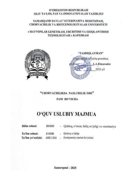 Samarqand davlat veterinariya meditsinasi, chorvachilik va bitexnologiyalar universiteti axborot resurs markazi.
