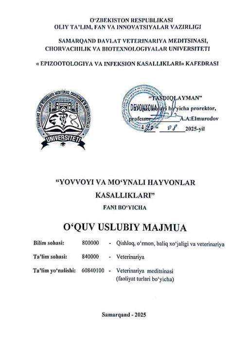 Samarqand davlat veterinariya meditsinasi, chorvachilik va bitexnologiyalar universiteti axborot resurs markazi.