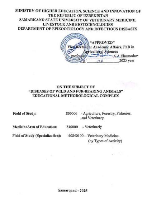 VETERINARIYA ISHINI TASHKIL ETISH ...