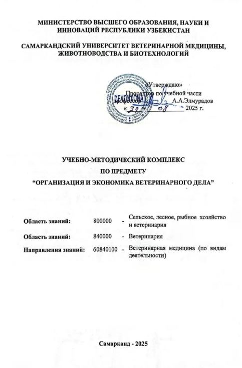 ОРГАНИЗАЦИЯ И ЭКОНОМИКА ВЕТЕРИНАРНОГО ...