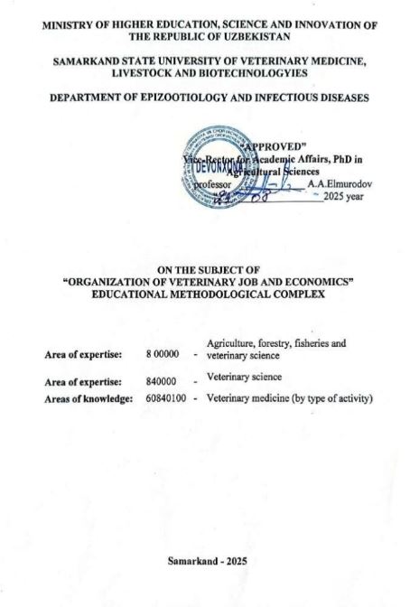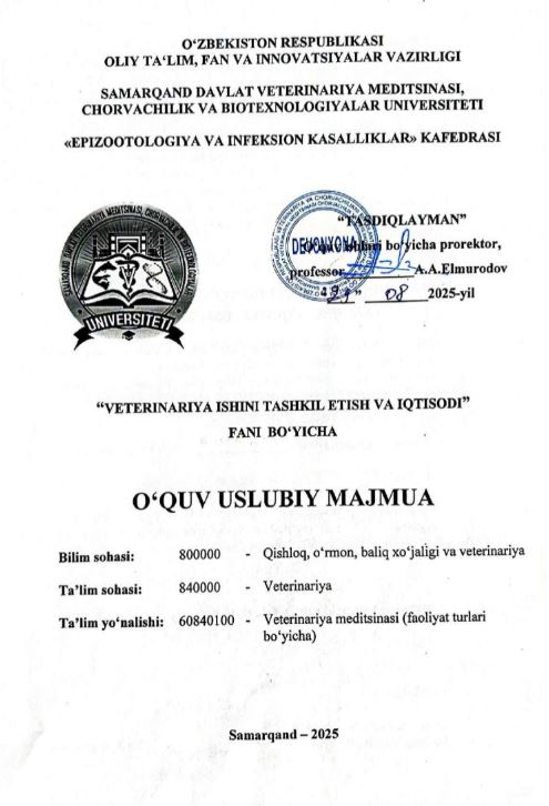 VETERINARIYA ISHINI TASHKIL ETISH, ...