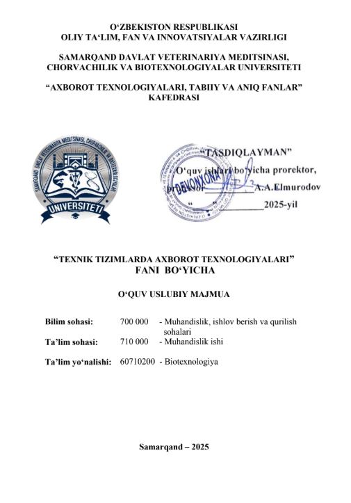 TEXNIK TIZIMLARDA AXBOROT TEXNOLOGIYALARI