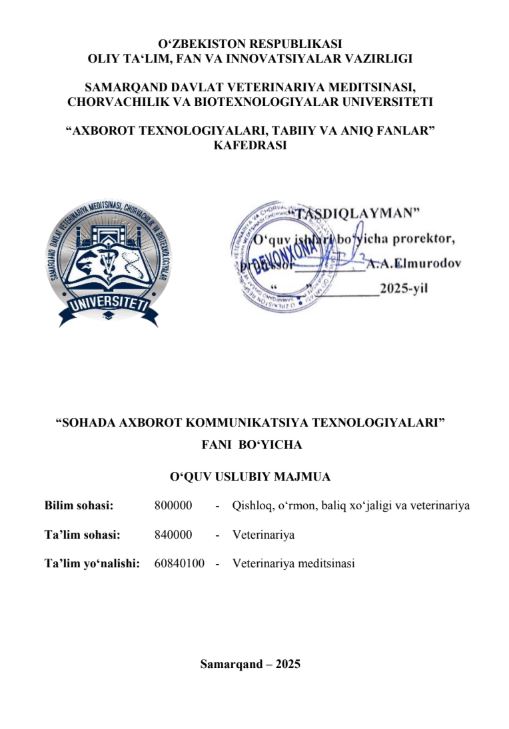 Samarqand davlat veterinariya meditsinasi, chorvachilik va bitexnologiyalar universiteti axborot resurs markazi.