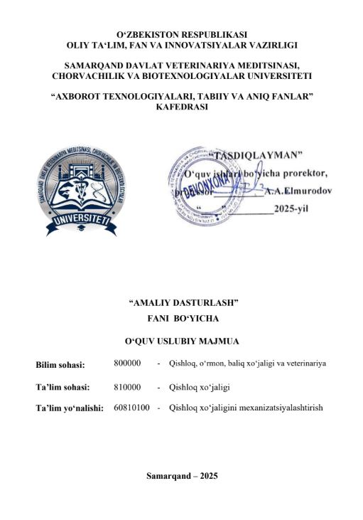 Samarqand davlat veterinariya meditsinasi, chorvachilik va bitexnologiyalar universiteti axborot resurs markazi.
